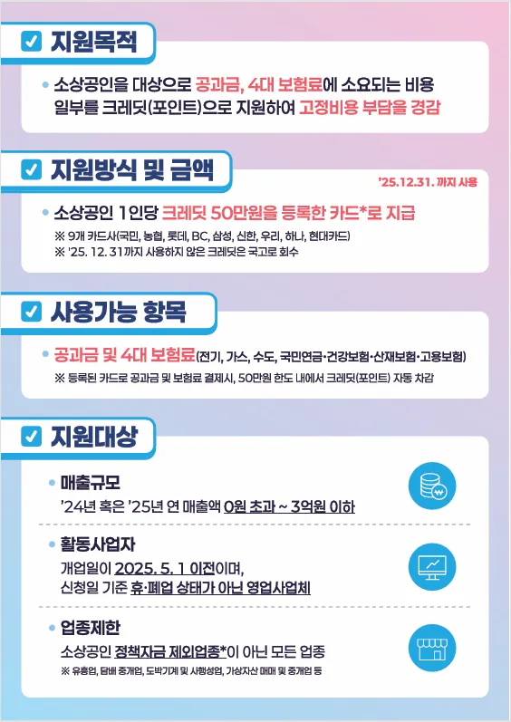 - 지원요건에 적합한 사업체 1곳에 한하여, 부담경감 크레딧 50만원이 지급됩니다.