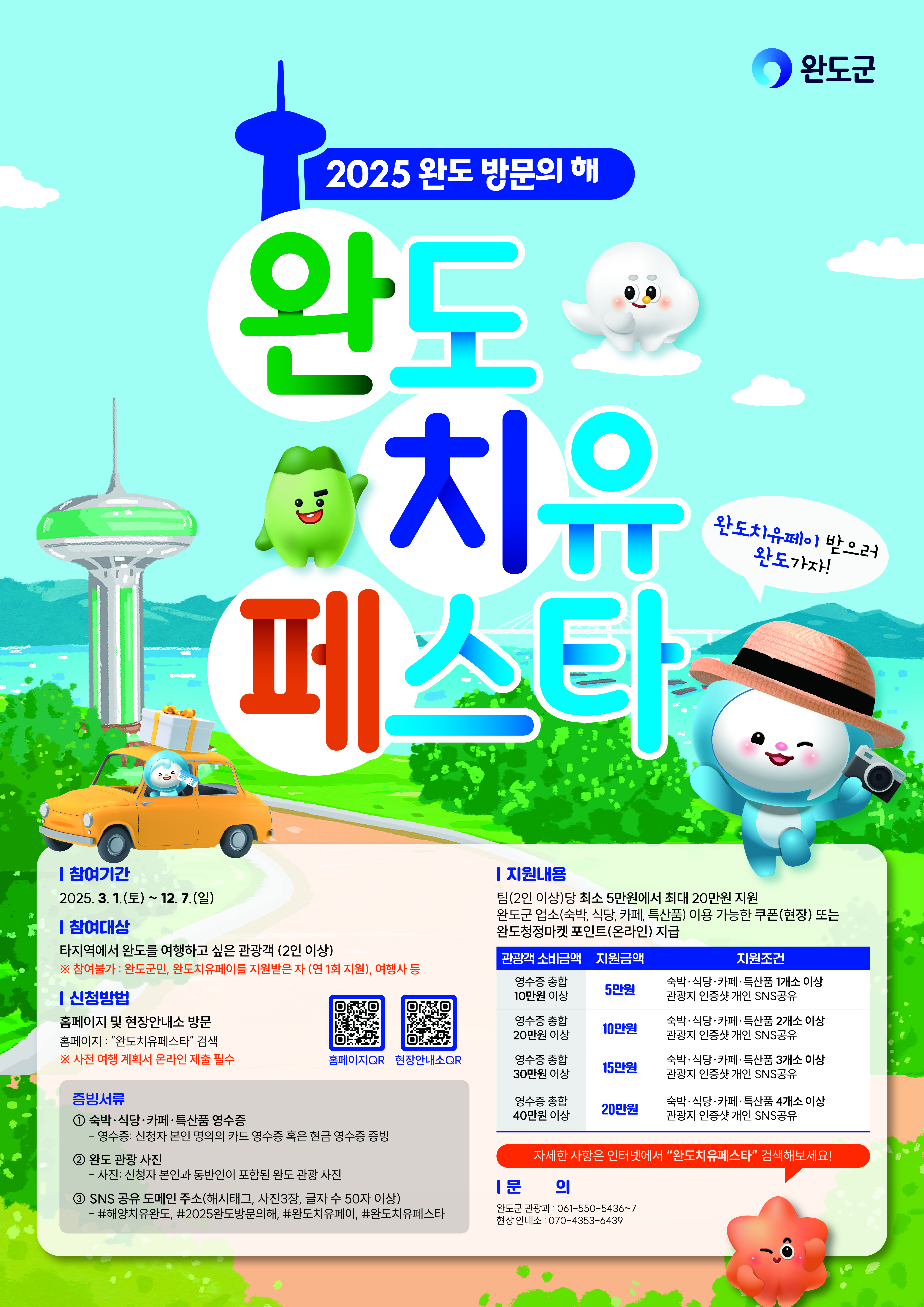 2025년 여름, 지친 몸과 마음에 쉼표를 찍어줄 여행지를 찾고 있다면 ‘완도 치유페스타’를 여행 일정에 꼭 넣어보시길 추천드립니다.