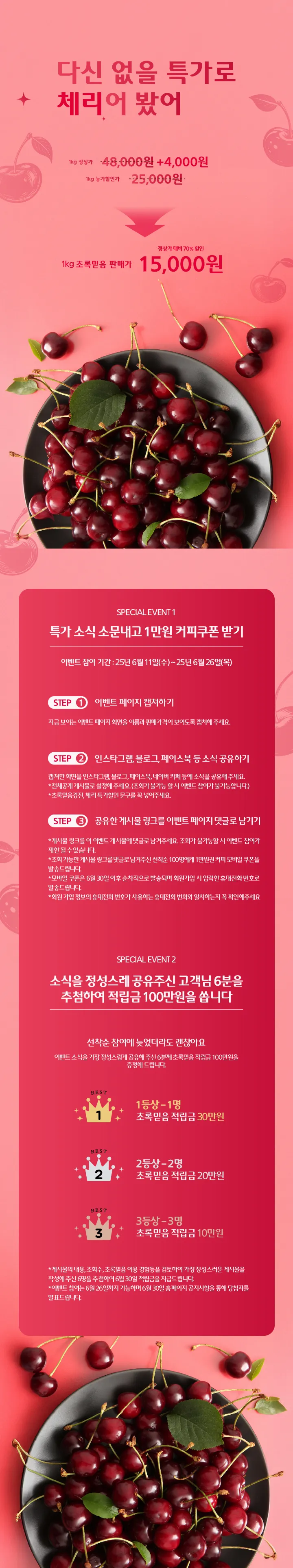 이번 특가 이벤트로 맛난 체리 드셔보세요~.