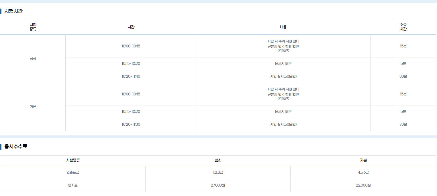 - 온라인으로 시험 접수 및 결제 (기본 시험 응시료: 약 18,000원)